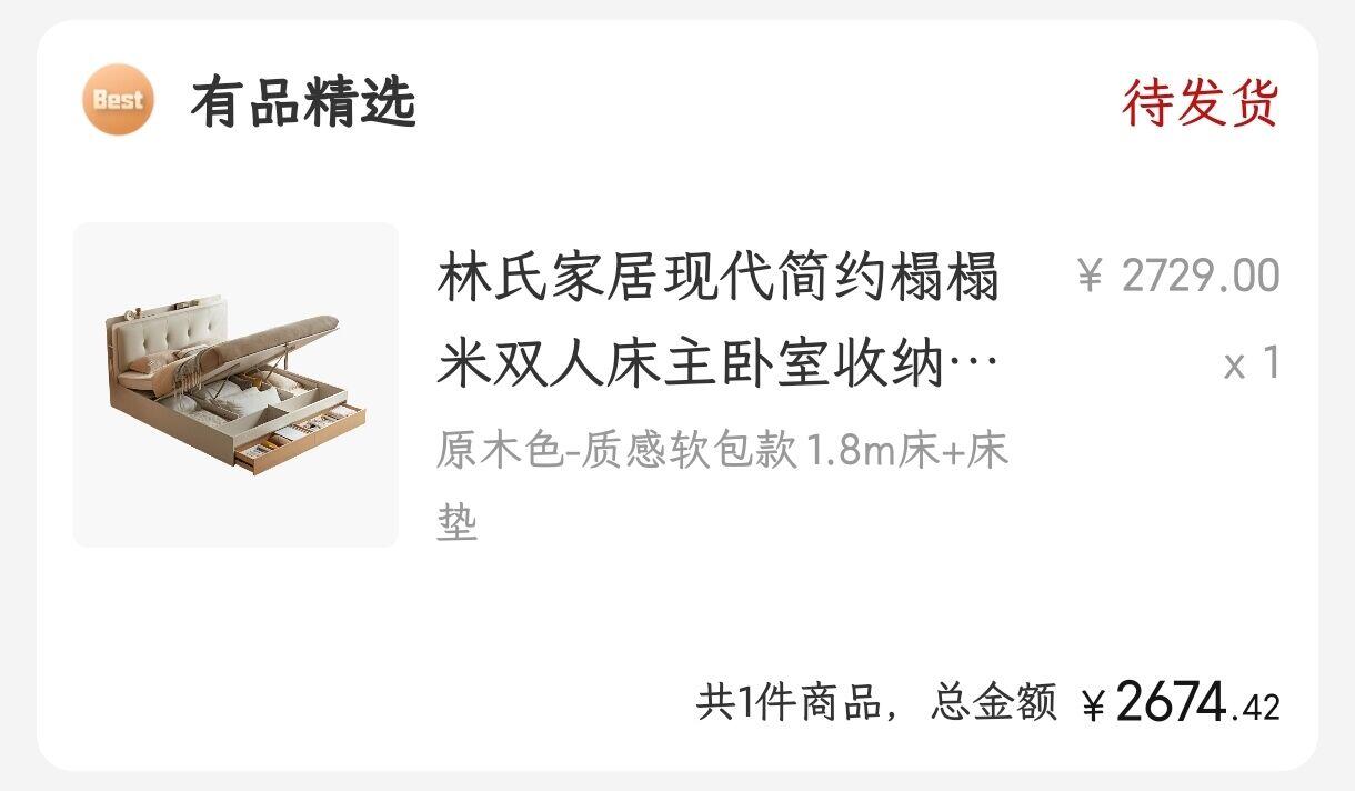 前几天在想着买什么床,我想是不是买那种悬空的,到时候买个扫地机器人,床下也方便打扫,后来觉得悬空的下面可能积灰太多,天天打扫也烦,索性还是买正常落地的吧。同时也在京东上面看了许多,然后也去了附近的家居城看了,感觉都差不多的床,价格却差很多,有的床都能卖大几千,似乎我也不配睡那种床,最终还是在林氏买了,买的是带收纳的,毕竟床下空间能利用一点是一点嘛,本来想买配套的床头柜的,但没想到一个床头柜300多,两个就要700左右了,算了,我到时候去京东看看吧。
